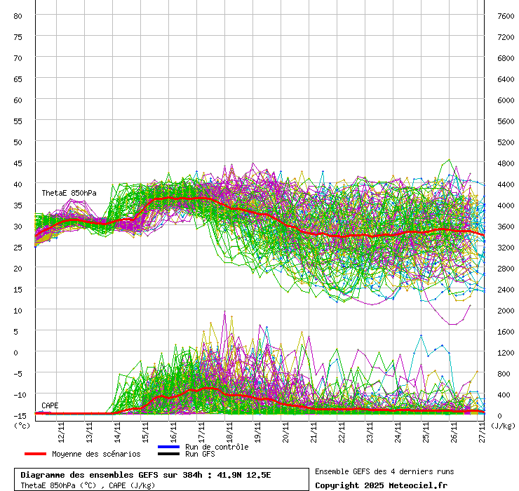 In queste mappe gli "spaghetti" generati dalla tecnica Ensemble per tutti i modelli matematici di cui si dispongono i dati, su località di vostra scelta. La tecnica Ensemble consiste nell'effettuare più corse (più quella di controllo) modificando di poco e opportunamente le condizioni iniziali inserite nei modelli stessi per verificare variazioni e affidabilità nell'evoluzione prevista. Laddove le soluzioni tendono ad "addensarsi" la prognosi sarà più probabile.