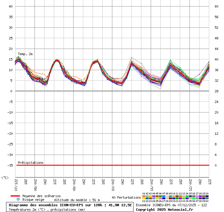 In queste mappe gli "spaghetti" generati dalla tecnica Ensemble per tutti i modelli matematici di cui si dispongono i dati, su località di vostra scelta. La tecnica Ensemble consiste nell'effettuare più corse (più quella di controllo) modificando di poco e opportunamente le condizioni iniziali inserite nei modelli stessi per verificare variazioni e affidabilità nell'evoluzione prevista. Laddove le soluzioni tendono ad "addensarsi" la prognosi sarà più probabile.