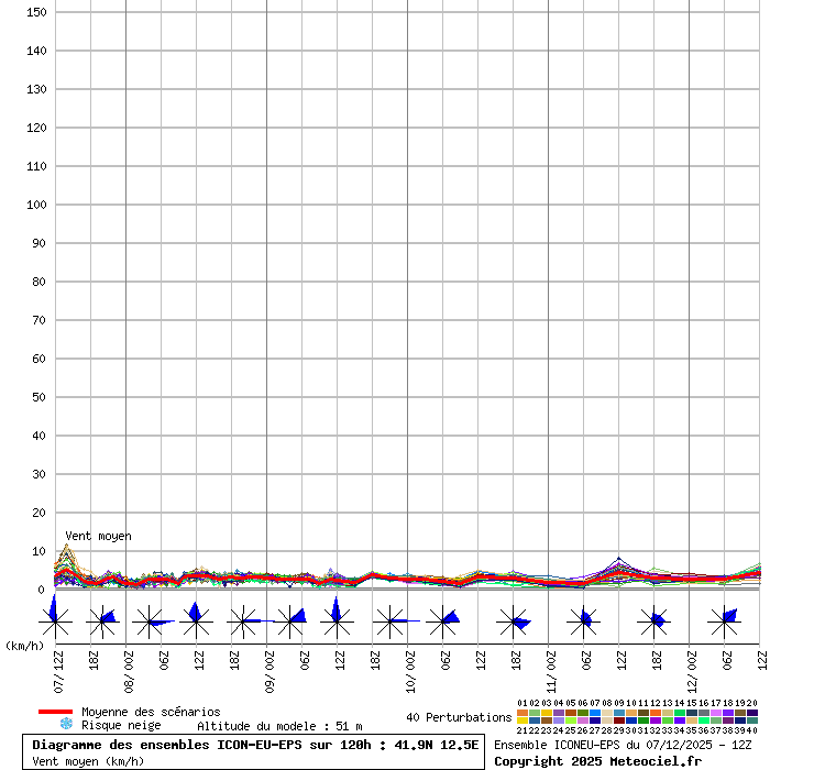 In queste mappe gli "spaghetti" generati dalla tecnica Ensemble per tutti i modelli matematici di cui si dispongono i dati, su località di vostra scelta. La tecnica Ensemble consiste nell'effettuare più corse (più quella di controllo) modificando di poco e opportunamente le condizioni iniziali inserite nei modelli stessi per verificare variazioni e affidabilità nell'evoluzione prevista. Laddove le soluzioni tendono ad "addensarsi" la prognosi sarà più probabile.