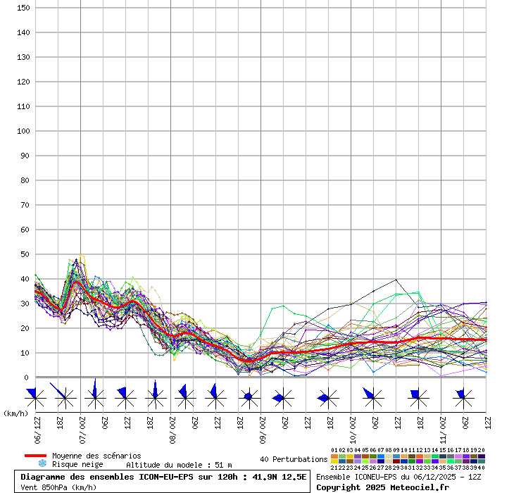 In queste mappe gli "spaghetti" generati dalla tecnica Ensemble per tutti i modelli matematici di cui si dispongono i dati, su località di vostra scelta. La tecnica Ensemble consiste nell'effettuare più corse (più quella di controllo) modificando di poco e opportunamente le condizioni iniziali inserite nei modelli stessi per verificare variazioni e affidabilità nell'evoluzione prevista. Laddove le soluzioni tendono ad "addensarsi" la prognosi sarà più probabile.