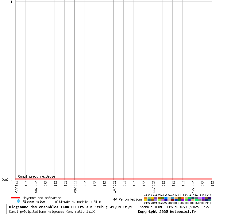 In queste mappe gli "spaghetti" generati dalla tecnica Ensemble per tutti i modelli matematici di cui si dispongono i dati, su località di vostra scelta. La tecnica Ensemble consiste nell'effettuare più corse (più quella di controllo) modificando di poco e opportunamente le condizioni iniziali inserite nei modelli stessi per verificare variazioni e affidabilità nell'evoluzione prevista. Laddove le soluzioni tendono ad "addensarsi" la prognosi sarà più probabile.