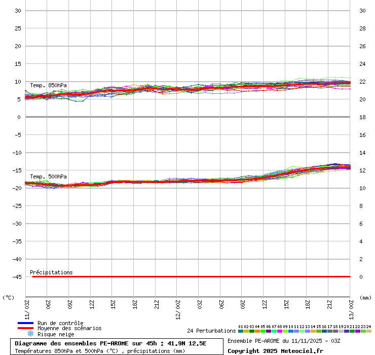 In queste mappe gli "spaghetti" generati dalla tecnica Ensemble per tutti i modelli matematici di cui si dispongono i dati, su località di vostra scelta. La tecnica Ensemble consiste nell'effettuare più corse (più quella di controllo) modificando di poco e opportunamente le condizioni iniziali inserite nei modelli stessi per verificare variazioni e affidabilità nell'evoluzione prevista. Laddove le soluzioni tendono ad "addensarsi" la prognosi sarà più probabile.