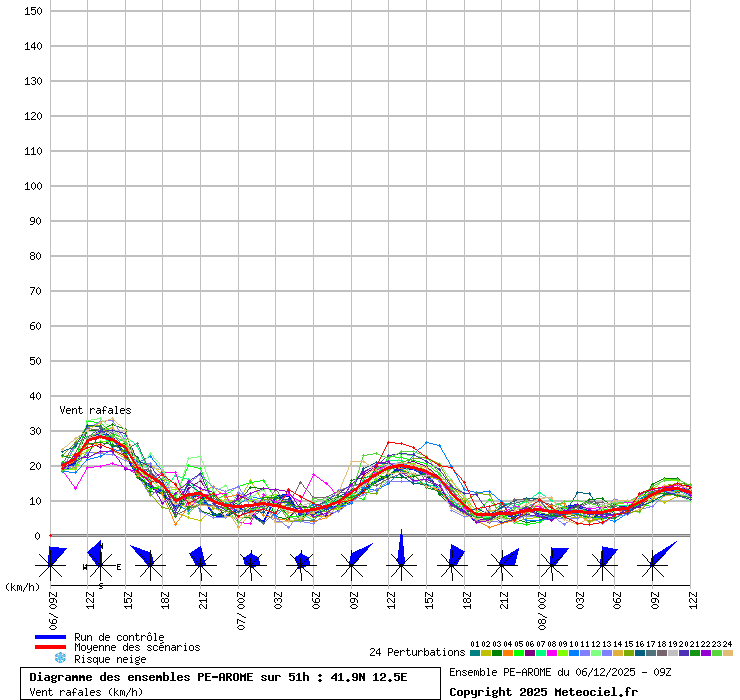 In queste mappe gli "spaghetti" generati dalla tecnica Ensemble per tutti i modelli matematici di cui si dispongono i dati, su località di vostra scelta. La tecnica Ensemble consiste nell'effettuare più corse (più quella di controllo) modificando di poco e opportunamente le condizioni iniziali inserite nei modelli stessi per verificare variazioni e affidabilità nell'evoluzione prevista. Laddove le soluzioni tendono ad "addensarsi" la prognosi sarà più probabile.