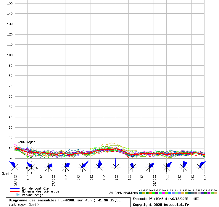 In queste mappe gli "spaghetti" generati dalla tecnica Ensemble per tutti i modelli matematici di cui si dispongono i dati, su località di vostra scelta. La tecnica Ensemble consiste nell'effettuare più corse (più quella di controllo) modificando di poco e opportunamente le condizioni iniziali inserite nei modelli stessi per verificare variazioni e affidabilità nell'evoluzione prevista. Laddove le soluzioni tendono ad "addensarsi" la prognosi sarà più probabile.