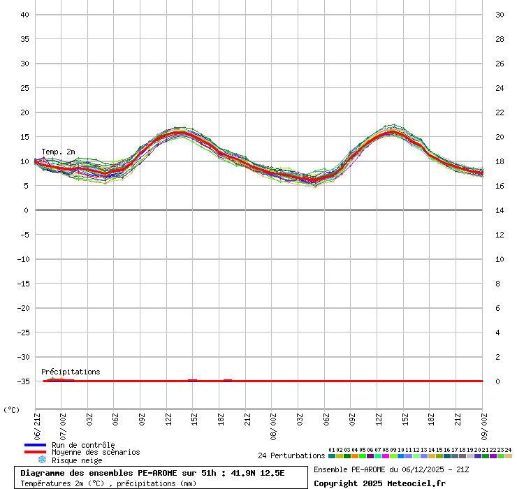 In queste mappe gli "spaghetti" generati dalla tecnica Ensemble per tutti i modelli matematici di cui si dispongono i dati, su località di vostra scelta. La tecnica Ensemble consiste nell'effettuare più corse (più quella di controllo) modificando di poco e opportunamente le condizioni iniziali inserite nei modelli stessi per verificare variazioni e affidabilità nell'evoluzione prevista. Laddove le soluzioni tendono ad "addensarsi" la prognosi sarà più probabile.