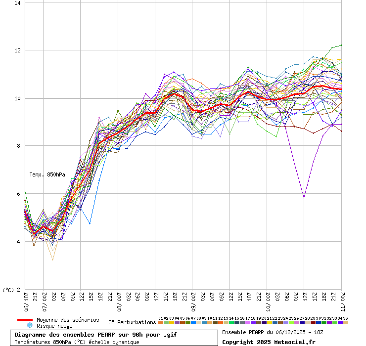 In queste mappe gli "spaghetti" generati dalla tecnica Ensemble per tutti i modelli matematici di cui si dispongono i dati, su località di vostra scelta. La tecnica Ensemble consiste nell'effettuare più corse (più quella di controllo) modificando di poco e opportunamente le condizioni iniziali inserite nei modelli stessi per verificare variazioni e affidabilità nell'evoluzione prevista. Laddove le soluzioni tendono ad "addensarsi" la prognosi sarà più probabile.
