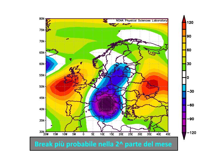 Infine Casciani pone l'attenzione sulla possibilità di un veloce break temporalesco all'interno del mese e più probabile nella sua 2^ parte, in rapida risoluzione a Cut/Off verso estreme regioni meridionali e poi Nord Africa (vedi figura in basso).