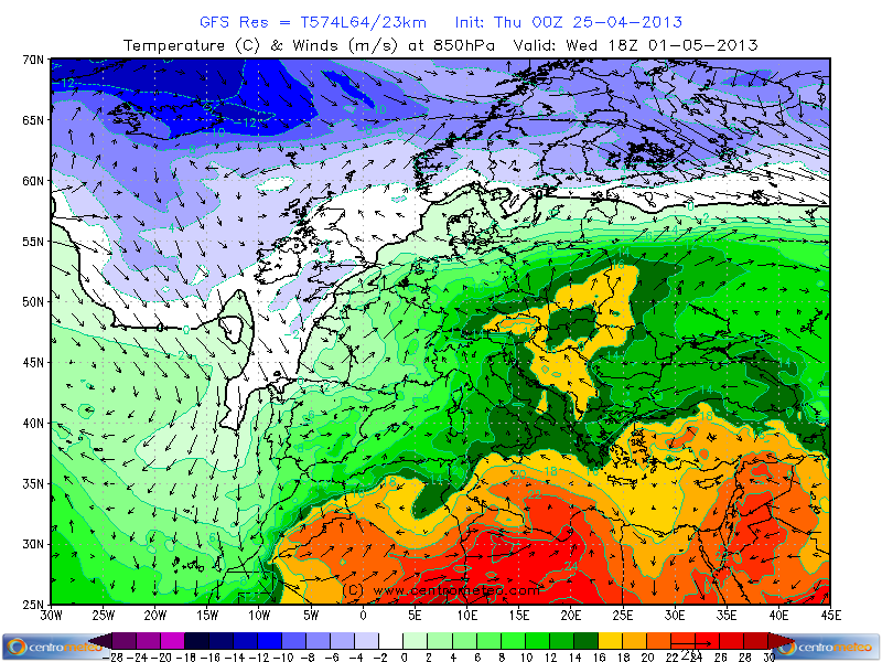 La stagione primaverile fra pochi giorni entrerà nel terzo mese stagionale, ma dai maggiori centri previsionali non giungono notizie confortanti.Buona parte del vecchio Continente, specie i settori centro-meridionali, è sotto la "protezione" di un promontorio di Alta pressione, mentre la "goccia" fredda che ha causato maltempo nei giorni scorsi, si allontana velocemente verso il sud d'Italia, "incalzata" da una rimonta anticiclonica di matrice sub-tropicale.Nel nord del Continente europeo un flusso di correnti occidentali piu' umide convoglia vari sistemi nuvolosi, con precipitazioni talvolta abbondanti, tra Isole Britanniche, Scandinavia, Finlandia e molte regioni della Russia.