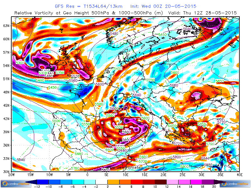 L'Alta pressione delle Azzorre sarà poi nuovamente sbilanciata verso l'Alto Atlantico, favorendo così la discesa di correnti instabili e fresche di matrice nord atlantica.Dal 27 Maggio i maggiori centri previsionali ipotizzano dunque una nuova fase perturbata, che andrà nuovamente a penalizzare soprattutto le regioni del Nord.