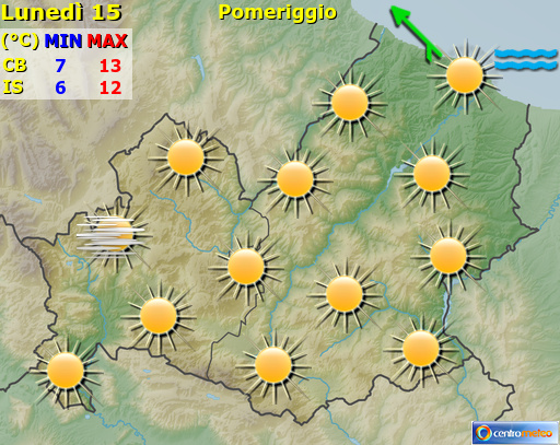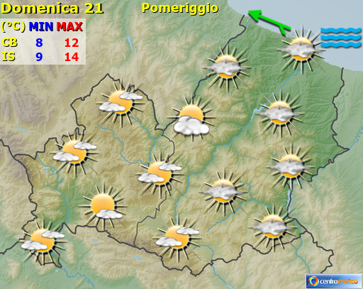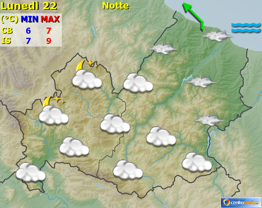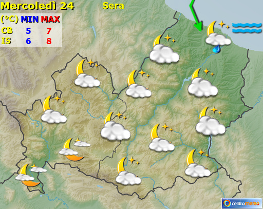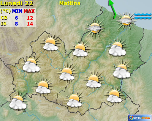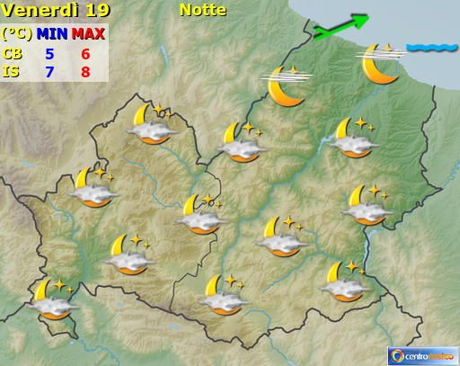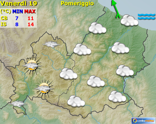 Le previsioni meteo per la regione Molise nei prossimi giorni. Mappe con il riassunto mattina, pomeriggio, sera, notte.