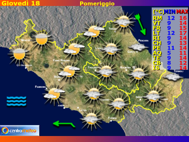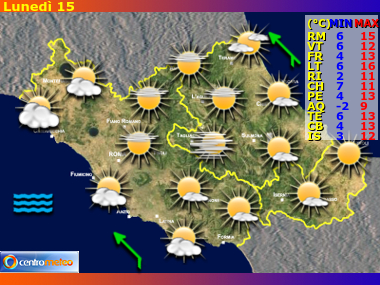 Le previsioni del tempo per le regioni Lazio, Abruzzo e Molise nei prossimi giorni. Il meteo riassunto e suddiviso in mattina, pomeriggio, sera, notte.