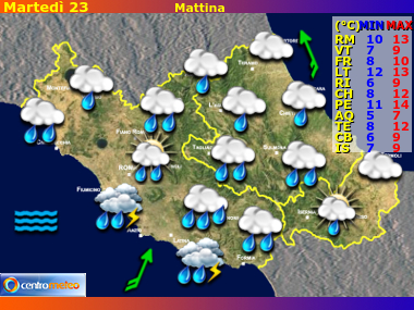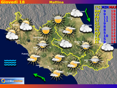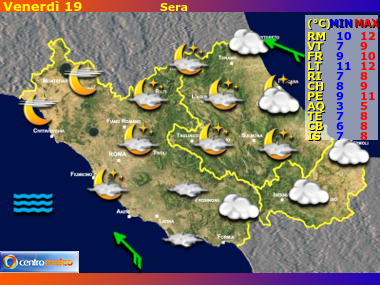Previsioni meteo Lazio, Abruzzo e Molise - Riassunto mattina, pomeriggio, sera, notte