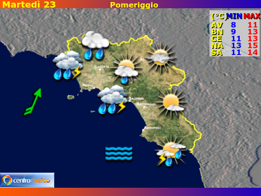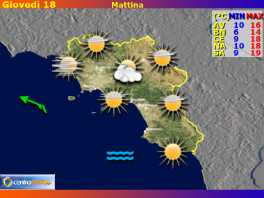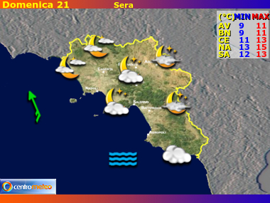 Previsioni meteo Campania - Riassunto mattina, pomeriggio, sera, notte