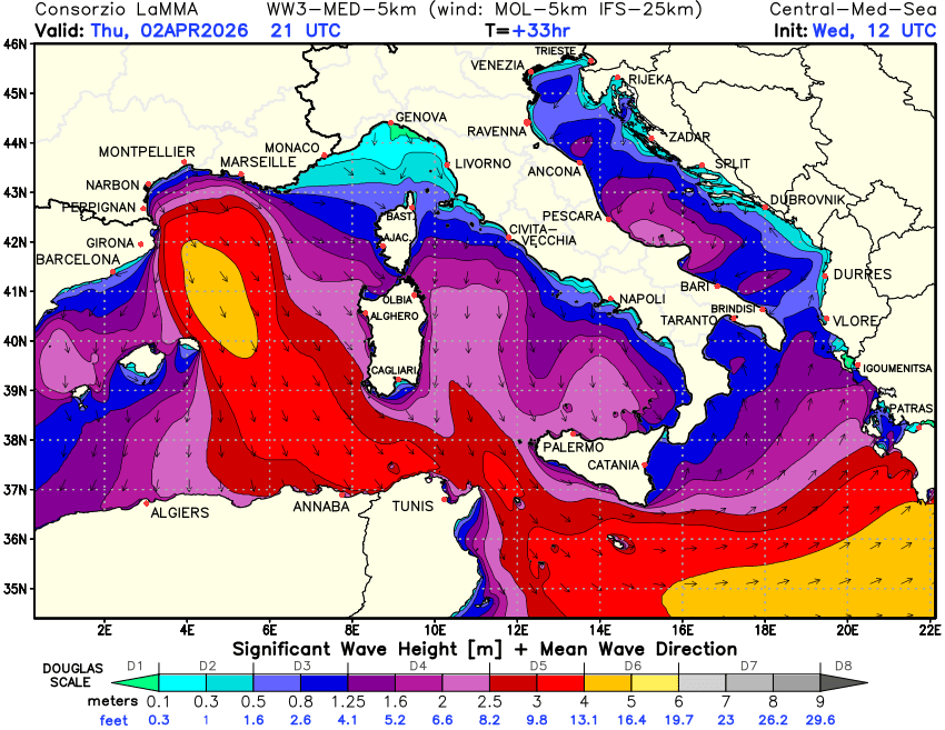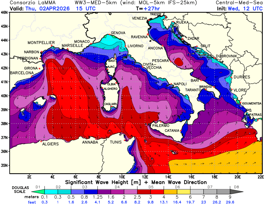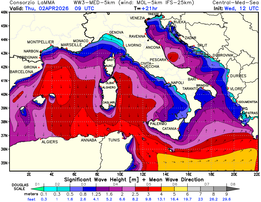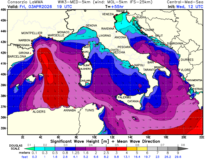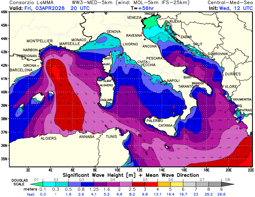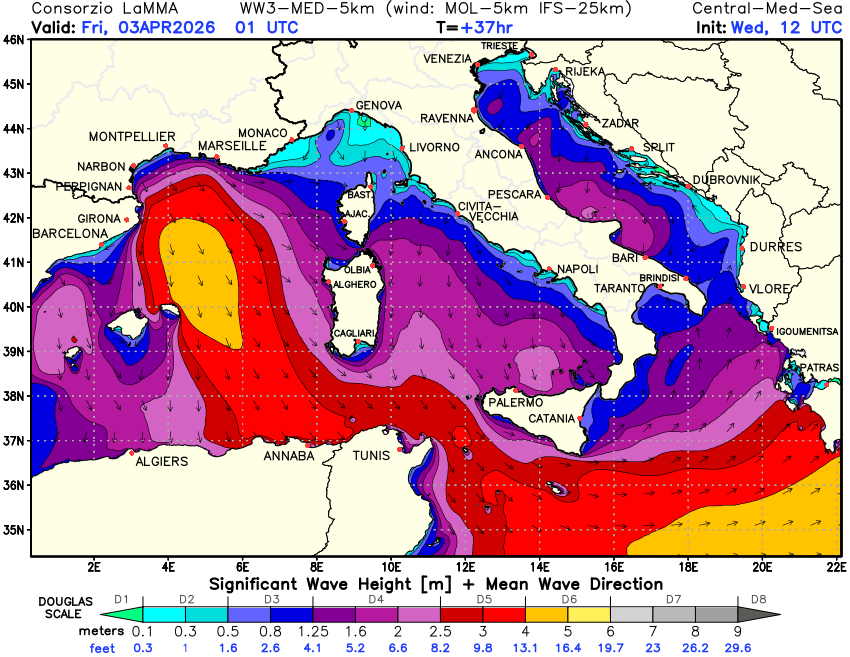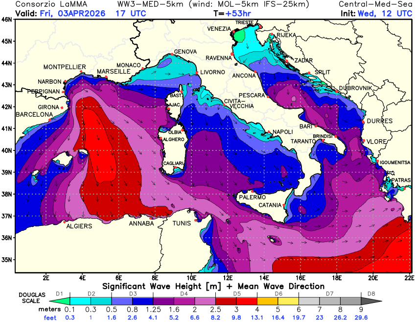 Modello WRF-ARW-7km (dati GFS) con la mappa sull'Italia di due tipici indici termodinamici: il CAPE... Leggi tutto...