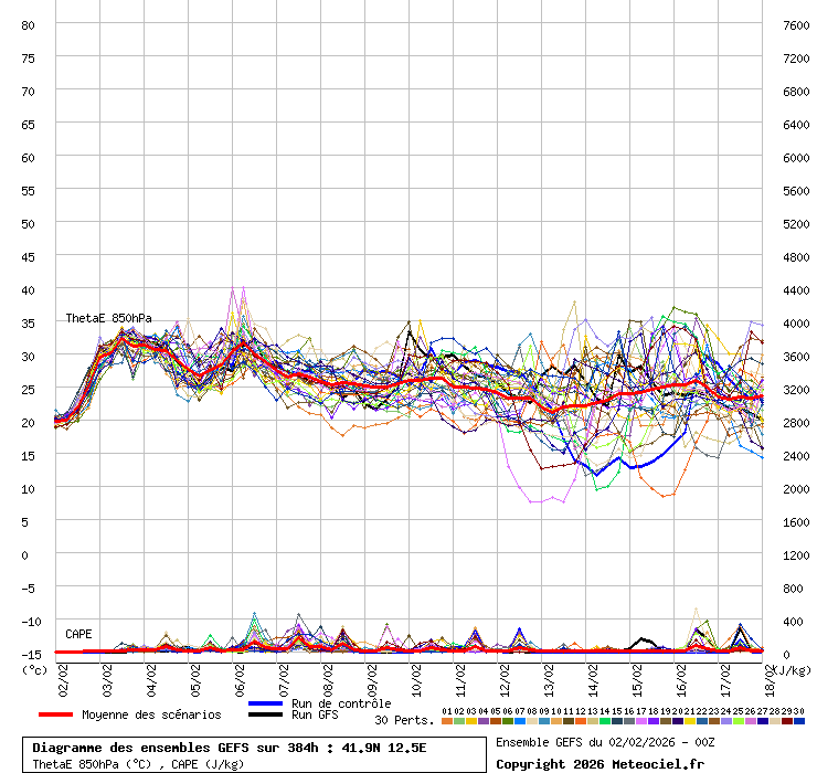 In queste mappe gli "spaghetti" generati dalla tecnica Ensemble per tutti i modelli matematici di cui si dispongono i dati, su località di vostra scelta. La tecnica Ensemble consiste nell'effettuare più corse (più quella di controllo) modificando di poco e opportunamente le condizioni iniziali inserite nei modelli stessi per verificare variazioni e affidabilità nell'evoluzione prevista. Laddove le soluzioni tendono ad "addensarsi" la prognosi sarà più probabile.