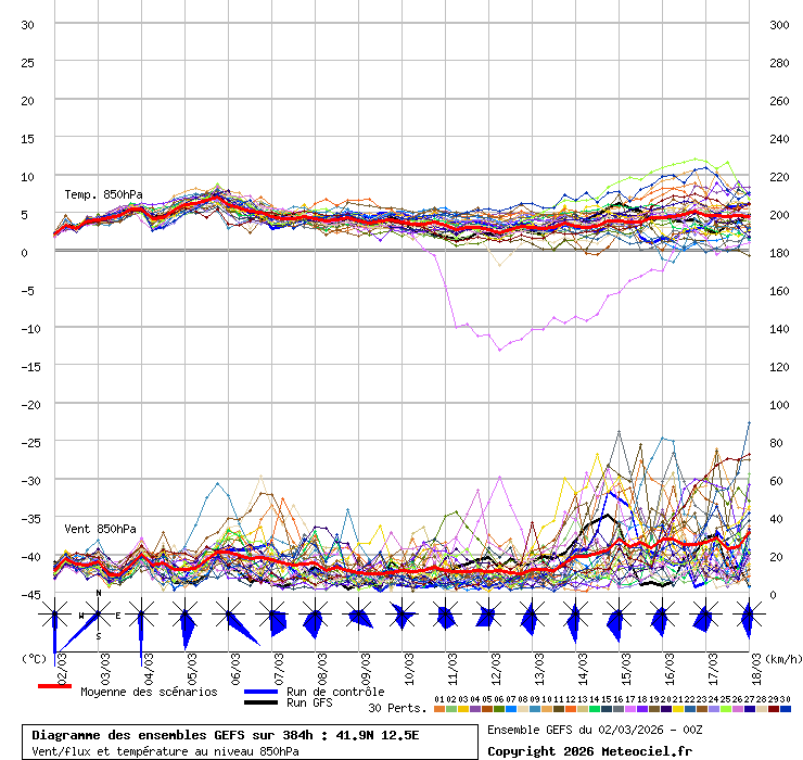 Gli spaghetti con geopotenziale e temperatura rispettivamente a 500hPa a 850hPa. Previsione per la... Leggi tutto...