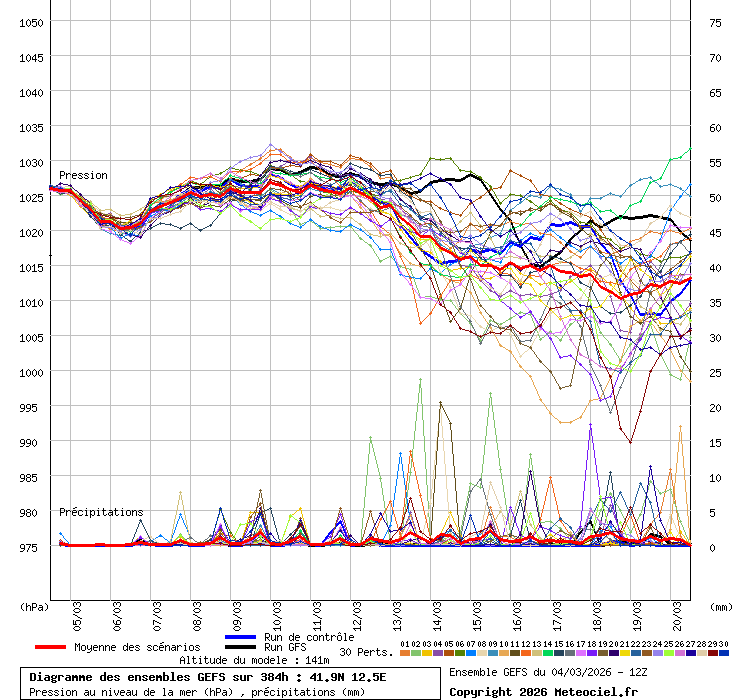 In queste mappe gli "spaghetti" generati dalla tecnica Ensemble per tutti i modelli matematici di cui si dispongono i dati, su località di vostra scelta. La tecnica Ensemble consiste nell'effettuare più corse (più quella di controllo) modificando di poco e opportunamente le condizioni iniziali inserite nei modelli stessi per verificare variazioni e affidabilità nell'evoluzione prevista. Laddove le soluzioni tendono ad "addensarsi" la prognosi sarà più probabile.