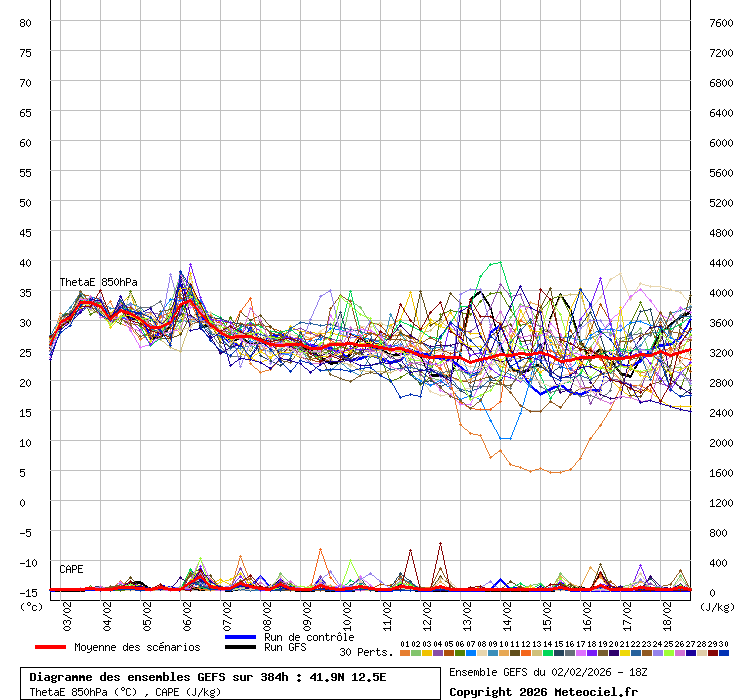 In queste mappe gli "spaghetti" generati dalla tecnica Ensemble per tutti i modelli matematici di cui si dispongono i dati, su località di vostra scelta. La tecnica Ensemble consiste nell'effettuare più corse (più quella di controllo) modificando di poco e opportunamente le condizioni iniziali inserite nei modelli stessi per verificare variazioni e affidabilità nell'evoluzione prevista. Laddove le soluzioni tendono ad "addensarsi" la prognosi sarà più probabile.