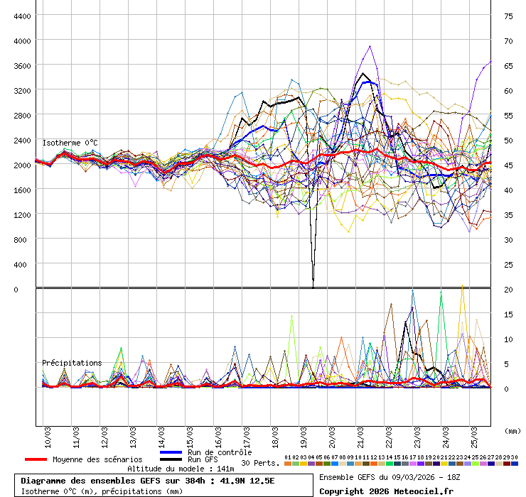 In queste mappe gli "spaghetti" generati dalla tecnica Ensemble per tutti i modelli matematici di cui si dispongono i dati, su località di vostra scelta. La tecnica Ensemble consiste nell'effettuare più corse (più quella di controllo) modificando di poco e opportunamente le condizioni iniziali inserite nei modelli stessi per verificare variazioni e affidabilità nell'evoluzione prevista. Laddove le soluzioni tendono ad "addensarsi" la prognosi sarà più probabile.