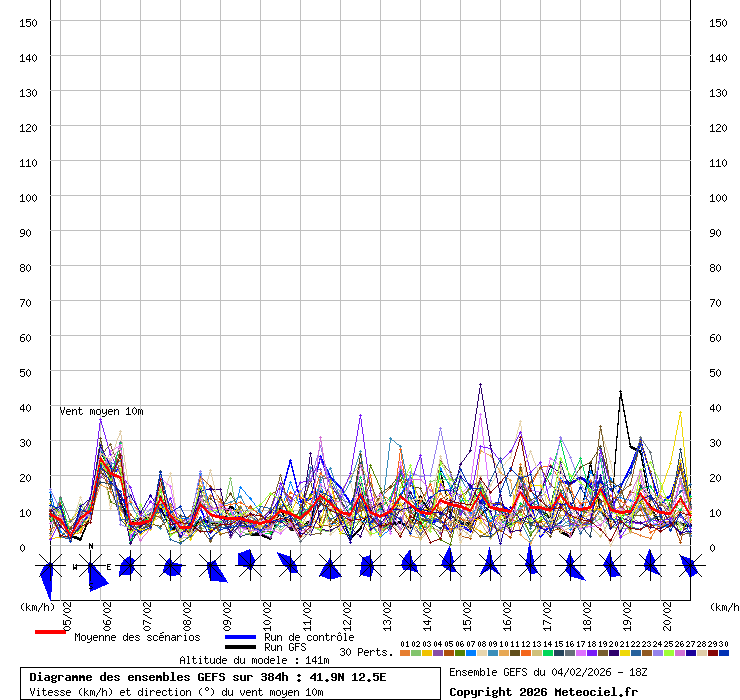 In queste mappe gli "spaghetti" generati dalla tecnica Ensemble per tutti i modelli matematici di cui si dispongono i dati, su località di vostra scelta. La tecnica Ensemble consiste nell'effettuare più corse (più quella di controllo) modificando di poco e opportunamente le condizioni iniziali inserite nei modelli stessi per verificare variazioni e affidabilità nell'evoluzione prevista. Laddove le soluzioni tendono ad "addensarsi" la prognosi sarà più probabile.