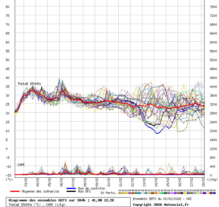 In queste mappe gli "spaghetti" generati dalla tecnica Ensemble per tutti i modelli matematici di cui si dispongono i dati, su località di vostra scelta. La tecnica Ensemble consiste nell'effettuare più corse (più quella di controllo) modificando di poco e opportunamente le condizioni iniziali inserite nei modelli stessi per verificare variazioni e affidabilità nell'evoluzione prevista. Laddove le soluzioni tendono ad "addensarsi" la prognosi sarà più probabile.