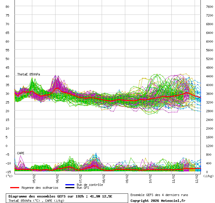 In queste mappe gli "spaghetti" generati dalla tecnica Ensemble per tutti i modelli matematici di cui si dispongono i dati, su località di vostra scelta. La tecnica Ensemble consiste nell'effettuare più corse (più quella di controllo) modificando di poco e opportunamente le condizioni iniziali inserite nei modelli stessi per verificare variazioni e affidabilità nell'evoluzione prevista. Laddove le soluzioni tendono ad "addensarsi" la prognosi sarà più probabile.