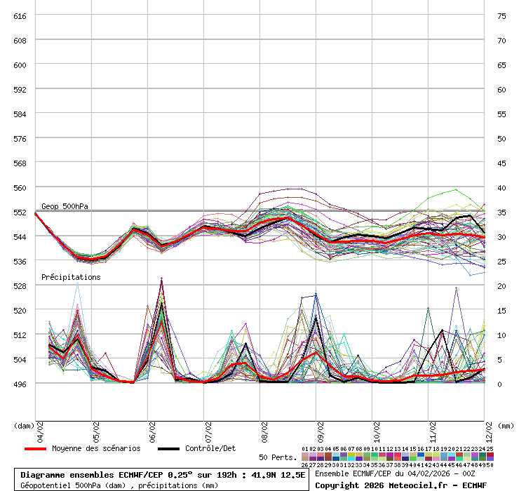 Tanti i parametri di indagine: l'andamento nel tempo del geopotenziale a 500hPa, le precipitazioni e la temperatura all'altezza geopotenziale di 850hPa, solo per fare un esempio.