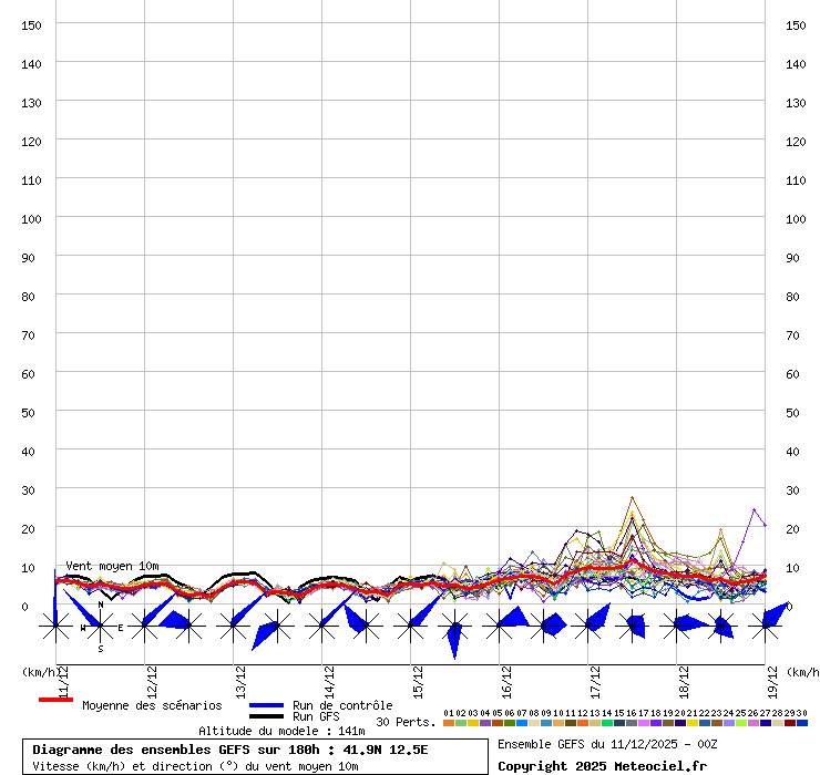 In queste mappe gli "spaghetti" generati dalla tecnica Ensemble per tutti i modelli matematici di cui si dispongono i dati, su località di vostra scelta. La tecnica Ensemble consiste nell'effettuare più corse (più quella di controllo) modificando di poco e opportunamente le condizioni iniziali inserite nei modelli stessi per verificare variazioni e affidabilità nell'evoluzione prevista. Laddove le soluzioni tendono ad "addensarsi" la prognosi sarà più probabile.