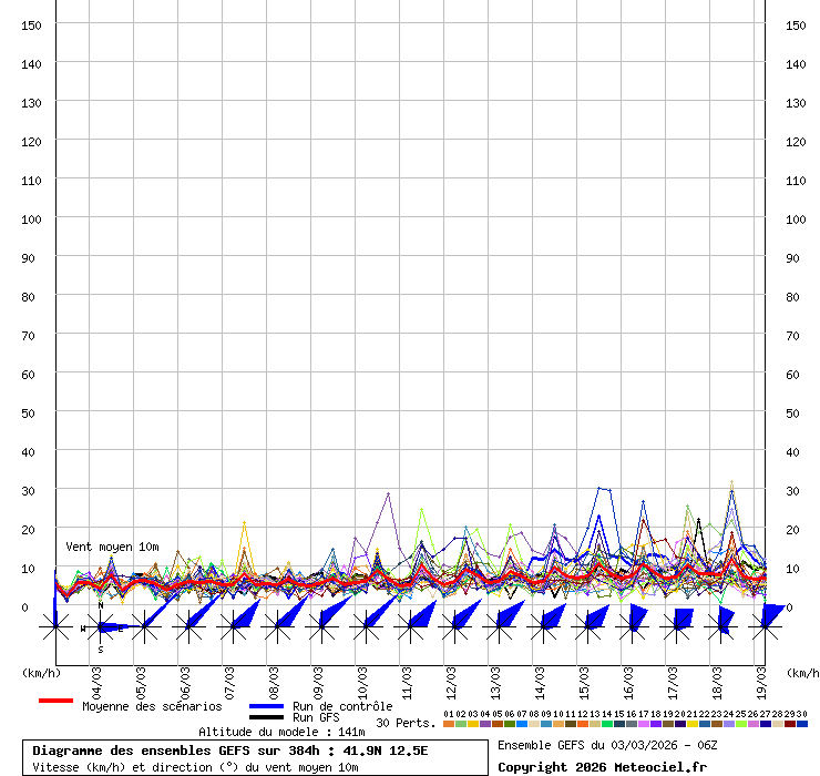 In queste mappe gli "spaghetti" generati dalla tecnica Ensemble per tutti i modelli matematici di cui si dispongono i dati, su località di vostra scelta. La tecnica Ensemble consiste nell'effettuare più corse (più quella di controllo) modificando di poco e opportunamente le condizioni iniziali inserite nei modelli stessi per verificare variazioni e affidabilità nell'evoluzione prevista. Laddove le soluzioni tendono ad "addensarsi" la prognosi sarà più probabile.