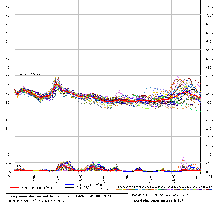 In queste mappe gli "spaghetti" generati dalla tecnica Ensemble per tutti i modelli matematici di cui si dispongono i dati, su località di vostra scelta. La tecnica Ensemble consiste nell'effettuare più corse (più quella di controllo) modificando di poco e opportunamente le condizioni iniziali inserite nei modelli stessi per verificare variazioni e affidabilità nell'evoluzione prevista. Laddove le soluzioni tendono ad "addensarsi" la prognosi sarà più probabile.