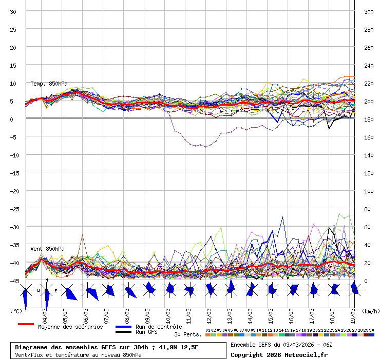 In queste mappe gli "spaghetti" generati dalla tecnica Ensemble per tutti i modelli matematici di cui si dispongono i dati, su località di vostra scelta. La tecnica Ensemble consiste nell'effettuare più corse (più quella di controllo) modificando di poco e opportunamente le condizioni iniziali inserite nei modelli stessi per verificare variazioni e affidabilità nell'evoluzione prevista. Laddove le soluzioni tendono ad "addensarsi" la prognosi sarà più probabile.