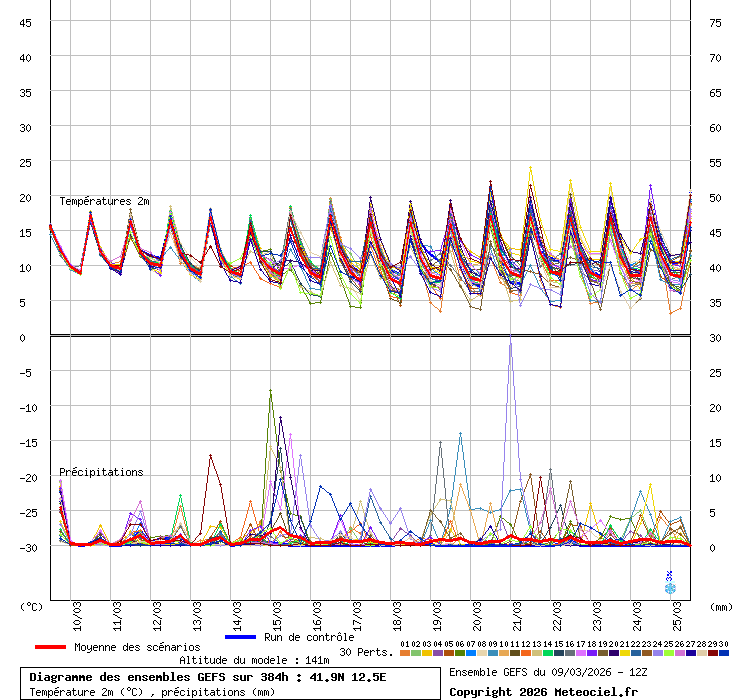 In queste mappe gli "spaghetti" generati dalla tecnica Ensemble per tutti i modelli matematici di cui si dispongono i dati, su località di vostra scelta. La tecnica Ensemble consiste nell'effettuare più corse (più quella di controllo) modificando di poco e opportunamente le condizioni iniziali inserite nei modelli stessi per verificare variazioni e affidabilità nell'evoluzione prevista. Laddove le soluzioni tendono ad "addensarsi" la prognosi sarà più probabile.