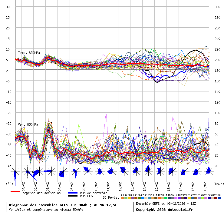 In queste mappe gli "spaghetti" generati dalla tecnica Ensemble per tutti i modelli matematici di cui si dispongono i dati, su località di vostra scelta. La tecnica Ensemble consiste nell'effettuare più corse (più quella di controllo) modificando di poco e opportunamente le condizioni iniziali inserite nei modelli stessi per verificare variazioni e affidabilità nell'evoluzione prevista. Laddove le soluzioni tendono ad "addensarsi" la prognosi sarà più probabile.