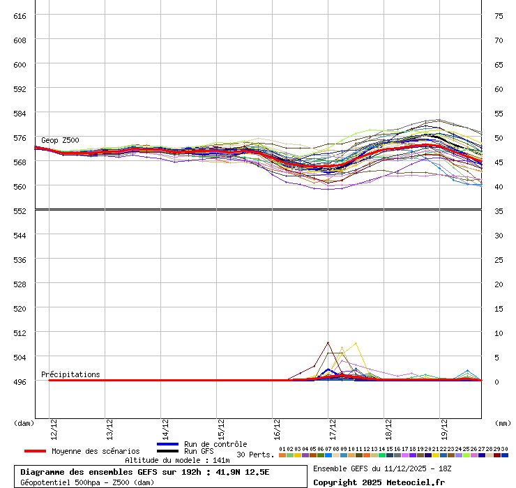 Modello americano GFS con spaghetti Ensemble. Geopotenziale a 500hPa e temperatura a 850hPa. La... Leggi tutto...