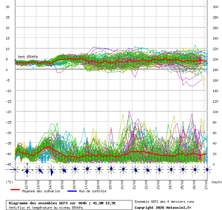 In queste mappe gli "spaghetti" generati dalla tecnica Ensemble per tutti i modelli matematici di cui si dispongono i dati, su località di vostra scelta. La tecnica Ensemble consiste nell'effettuare più corse (più quella di controllo) modificando di poco e opportunamente le condizioni iniziali inserite nei modelli stessi per verificare variazioni e affidabilità nell'evoluzione prevista. Laddove le soluzioni tendono ad "addensarsi" la prognosi sarà più probabile.