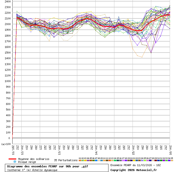 In queste mappe gli "spaghetti" generati dalla tecnica Ensemble per tutti i modelli matematici di cui si dispongono i dati, su località di vostra scelta. La tecnica Ensemble consiste nell'effettuare più corse (più quella di controllo) modificando di poco e opportunamente le condizioni iniziali inserite nei modelli stessi per verificare variazioni e affidabilità nell'evoluzione prevista. Laddove le soluzioni tendono ad "addensarsi" la prognosi sarà più probabile.
